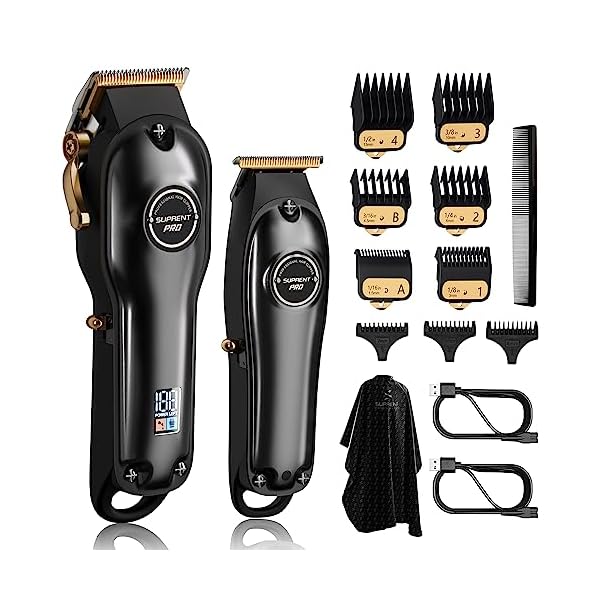 SUPRENT PRO Professional Hair Clippers for Men- Hair Cutting Kit & Zero Gap T-Blade Trimmer Combo- Cordless Barber Clipper Set with LED Display for Mens Gifts(Black)