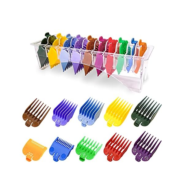 10 Professional Hair Clipper Guards Cutting Guides Compatible with Most Wahl Clippers with Organizer, Color Coded Clipper Combs Replacement - 1/16" to 1"