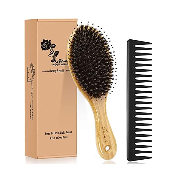 Hair Brush Comb Set Boar Bristle Hairbrush for Curly Thick Long Fine Dry Wet Hair,Best Travel Bamboo Paddle Detangler Detangling Hair Brushes for Women Men Kids Adding Shine Smoothing Hair