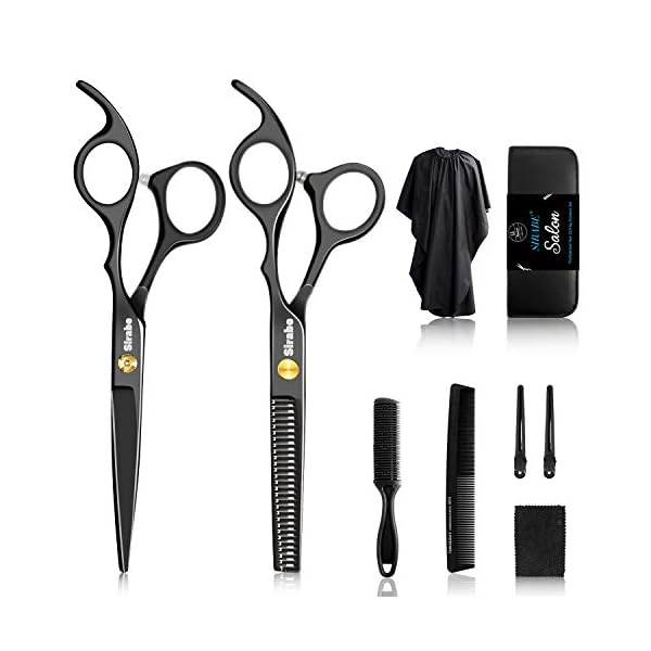 Sirabe 10 PCS Hair Cutting Scissors Set, Professional Haircut Scissors Kit with Cutting Scissors, Thinning Shears, Comb, Cape, Clips, Black Hairdressing Texturizing Shears Set for Barber, Salon, Home