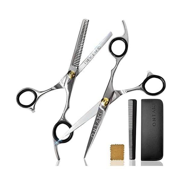 Ontaki Hair Shears & Thinning Scissors Kit - 7-Inch, Silver Japanese Steel - Precision Hair Cutting Scissors for Professionals & Home Stylists with Styling Comb & Pouch