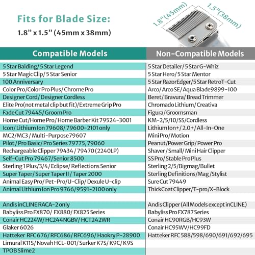 Fit Wahx Model:5Star Balding, 5Star Legend, 5Star Magic Clip, 5Star Senior, ColorPro, ColorProPlus, ColorGroom, ChromePro, Designer, Elite Pro, Extreme Grip Pro, FadeCut, HomeCut, HomePro, HomeBarber79524-3001, Icon, Lithium Ion79608/79600-2101/9766, MC2/3, Multi-Purpose79607, Pilot, Pro Basic, ProSeries79775/79060, Rechargeable Clipper79434, Self-Cut Pro, Senior, Sterling 1Plus/3/4/Eclipse/Refections Senior, SuperTaper, SuperTaper II, Taper2000, Animal U-Clip, Dexule U-Clip, EasyPro and Pet-Pro