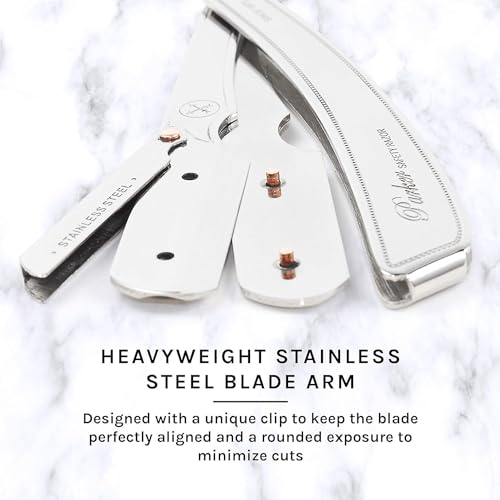 SUPERIOR DESIGN: This razor has a Clip/Lock blade holder along with inserts to ensure secure blade insertion. The rounded exposure at the end of the blade compartment is specifically engineert to minimize nick and cuts. This razor has the perfect blade expsure for all your single edge razor needs, whether it is a full shave or edging lines.