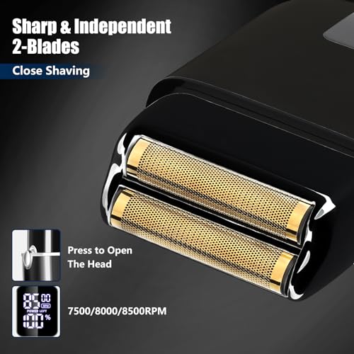 Classic Men’s Foil Shaver: The foil shaver for men has three adjustable speeds(7500/8000/8500 RPM) for a close shave on the neck, face and hairline. Professionally designed ultra-thin titanium foil for a bump-free, ultra-close shave for zero finishes. The design of two independent floating blade nets increases the contact area and the shaving efficiency is higher